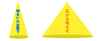 今、lmルーメンではないあたらしい明るさの新基準PLm:(有効光束密度、瞳孔ルーメン指数) 「瞳孔:pupil」 、放射束:lumen」が使われ始めています。その他にもパナソニックはFeu(フー)、東芝はWeluna(ウェルナ)という明るさの新基準を打ち出しています。名前は違いますが、共に床面や作業面などの明るさだけではなく、人が空間全体から感じる明るさの印象を「空間の明るさ感」としています。
